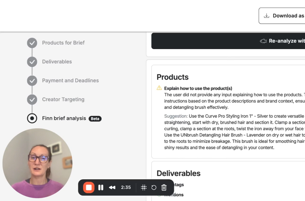 Behind every high-quality asset is a well-constructed creative brief. Brief Analysis gives you instant feedback, from compensation to setting clear expectations for creators, so you can generate content quickly and confidently.